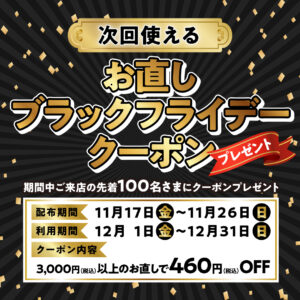 ブラックフライデーの期間に、ご来店された先着100名さまに特別なクーポンをプレゼント!