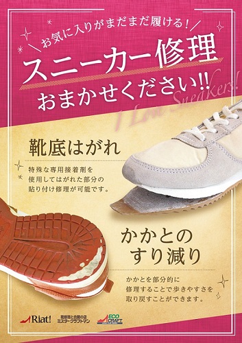 より長くお気に入りのスニーカーを履けるよう修理いたします。