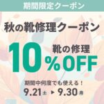 【公式LINE】秋の靴修理クーポン(靴の修理10%OFF)プレゼント!