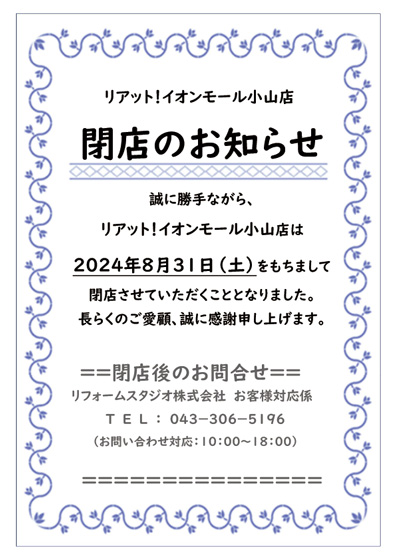 お知らせ ◆閉店のお知らせ◆